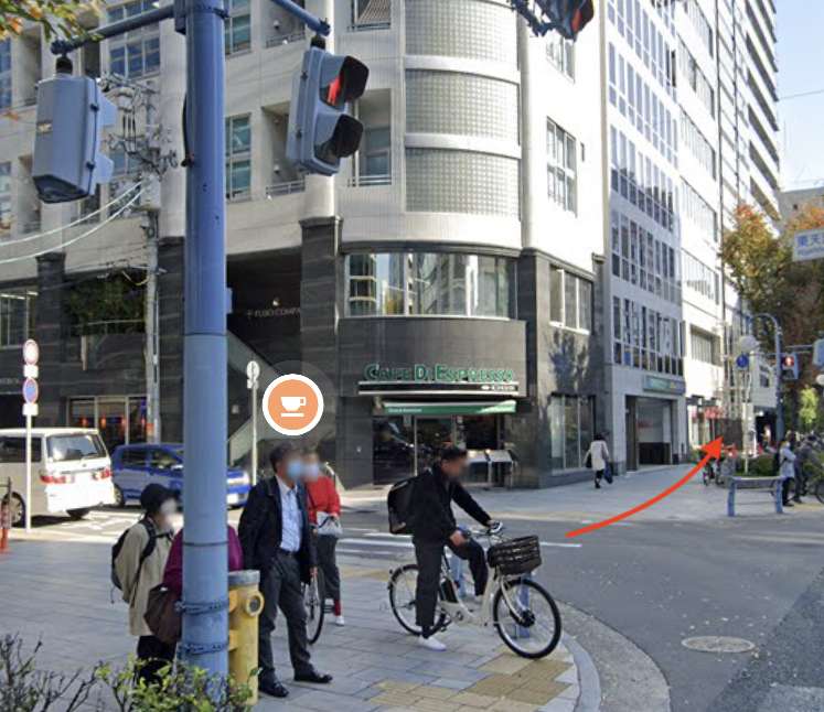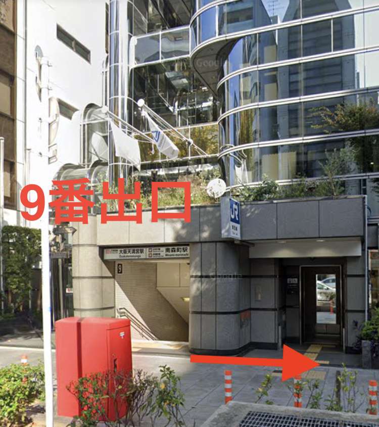 9番出口を出て左手、画像の矢印方向に進みます!