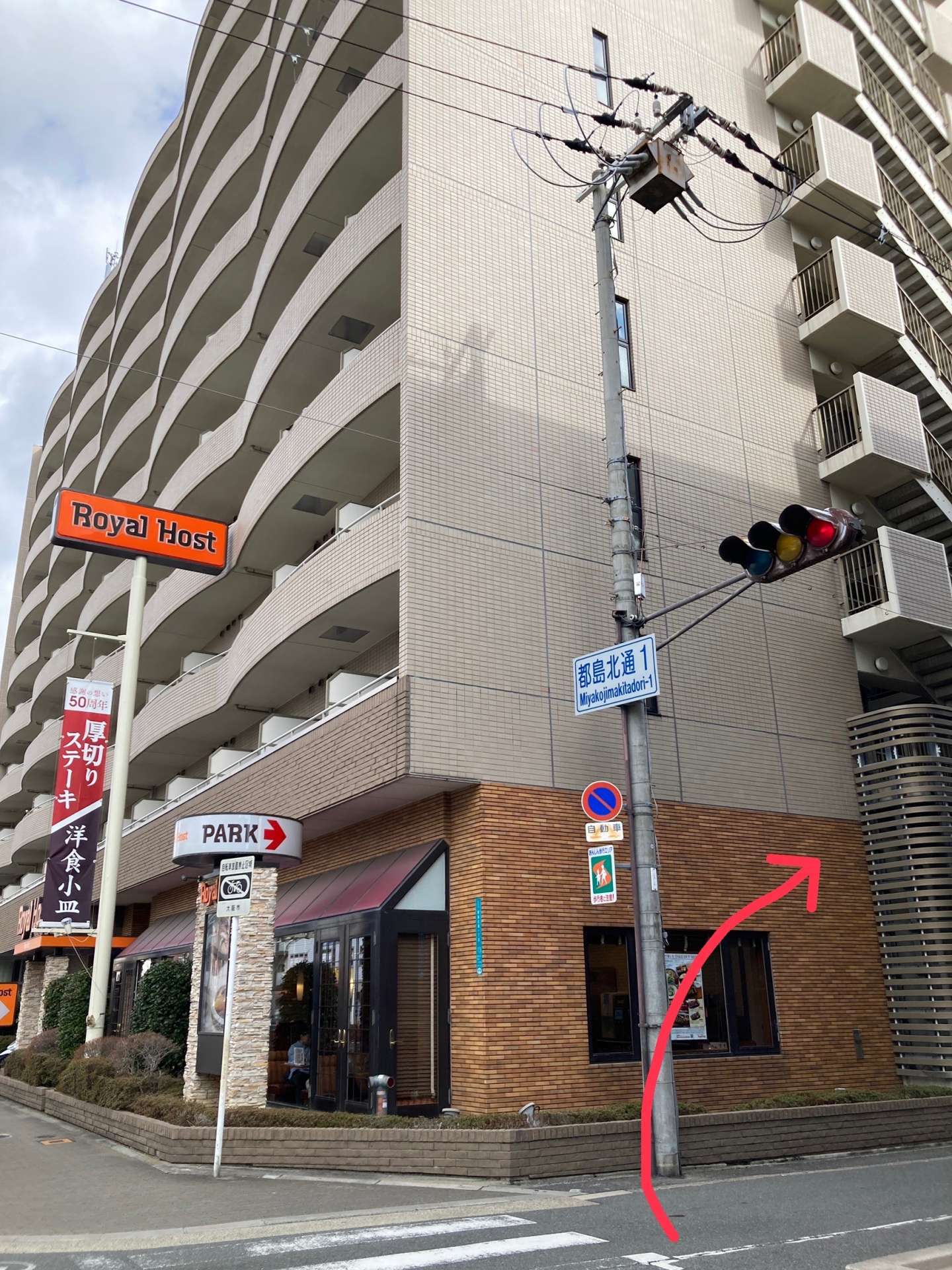 ロイヤルホストさんが見えてきます。